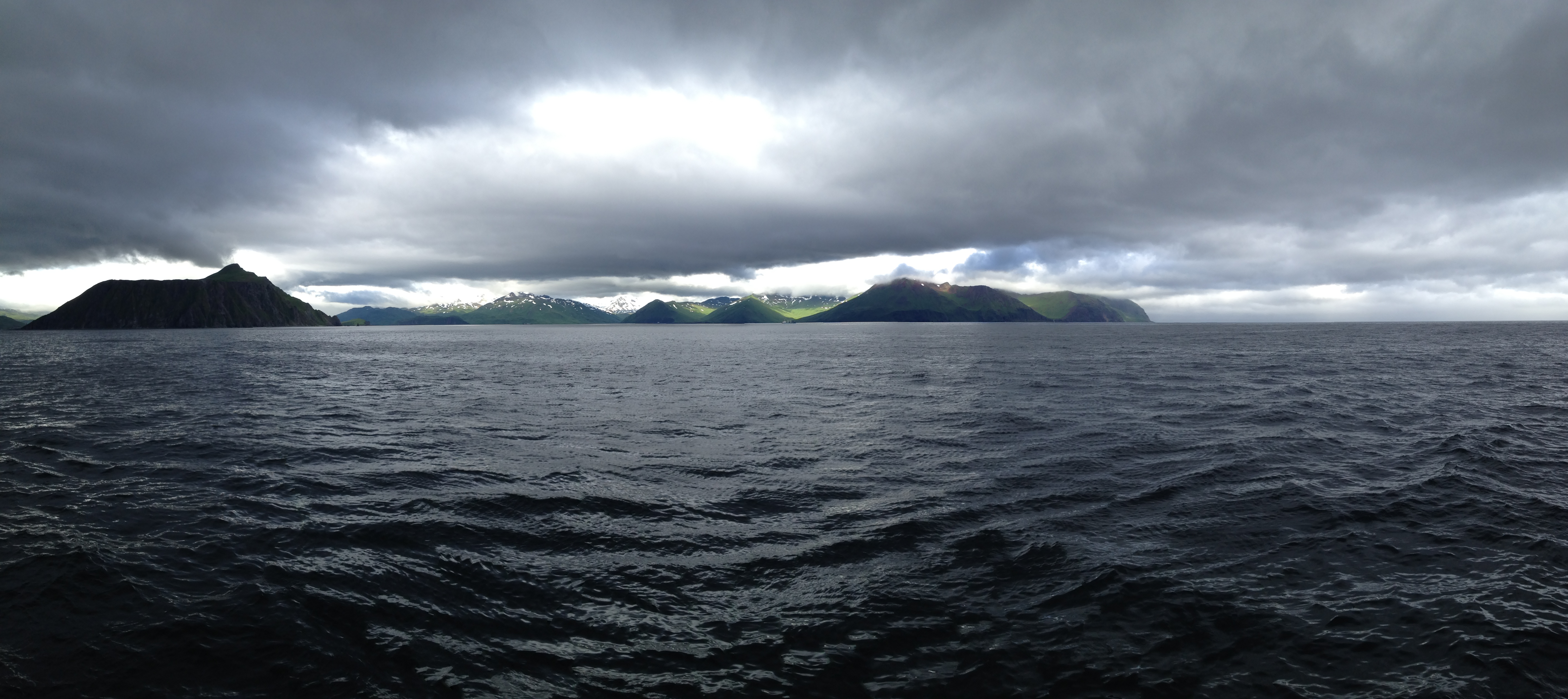 IMG_2998 August 4, 2016 5664 × 2524 Cruising the Pacific 2016: Reflection Pulling into Dutch Harbor, AK.