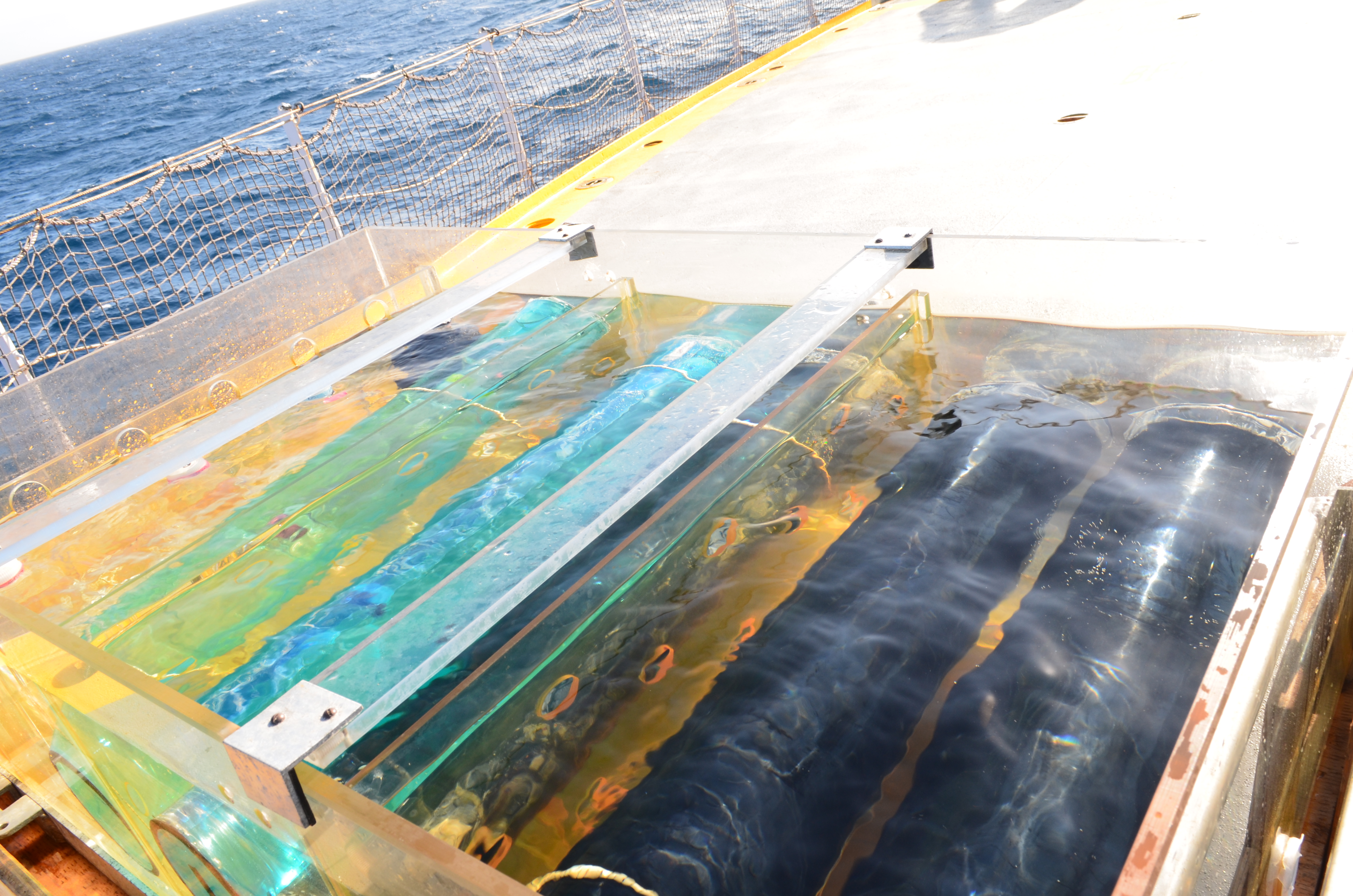 DSC_0059 July 12, 2017 4928 × 3264 Cruising Big Blue ’17: Mostly Regarding Food Phytoplankton incubation containers are used to evaluate algae growth rates without (L) and with (R) filtered light. Filters simulate growth at depth where less light penetrates.