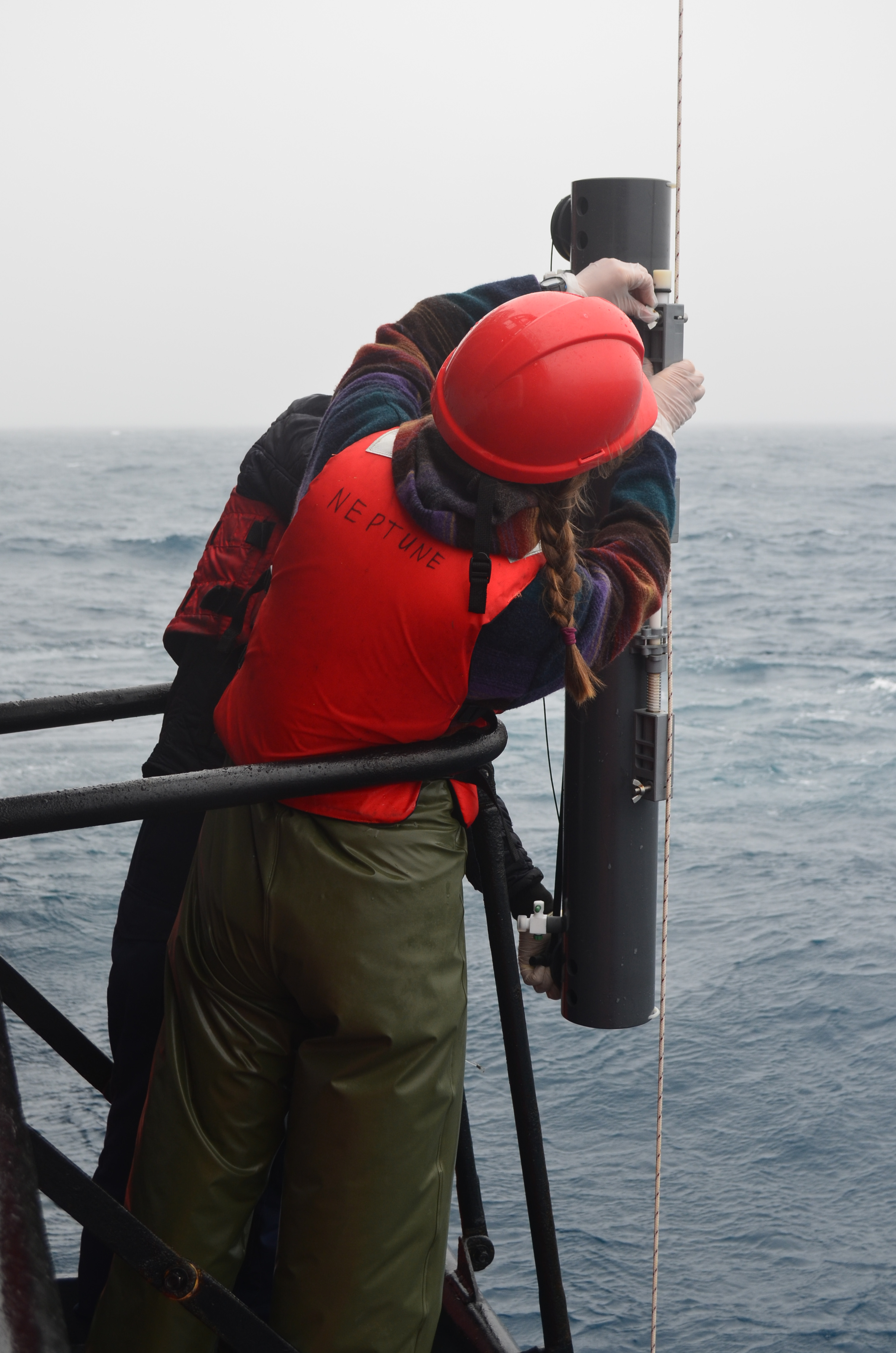 DSC_0050-2 August 30, 2017 3024 × 4566 Come to Papa 2017 Attaching the trace metal clean Go-Flo bottle to the kevlar line on which it will be lowered.
